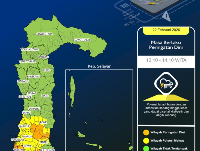 Prakiraan ini dibuat Prakirawan BMKG Makassar pada 22 Februari 2026 pukul 14.00 WITA.